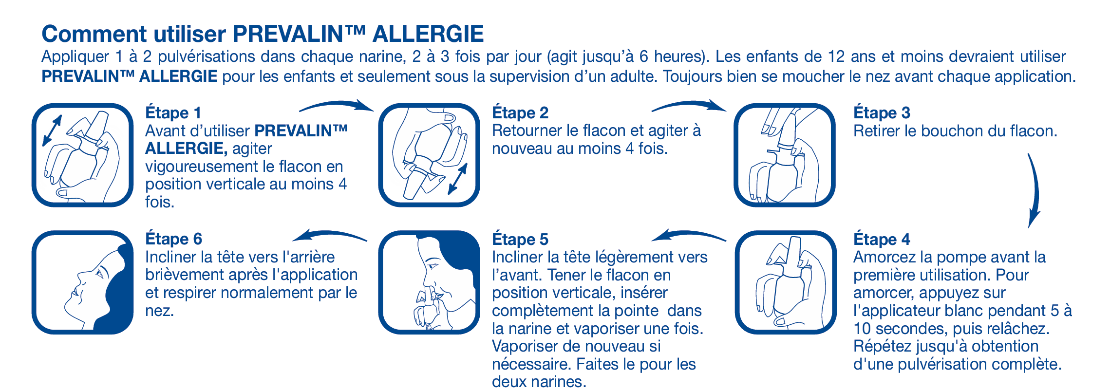 Prevalin™ Allergie Enfants convient aux enfants de 6 à 12 ans. Prevalin™ Allergie Enfants ne doit être utilisé que sous la surveillance d’un adulte.