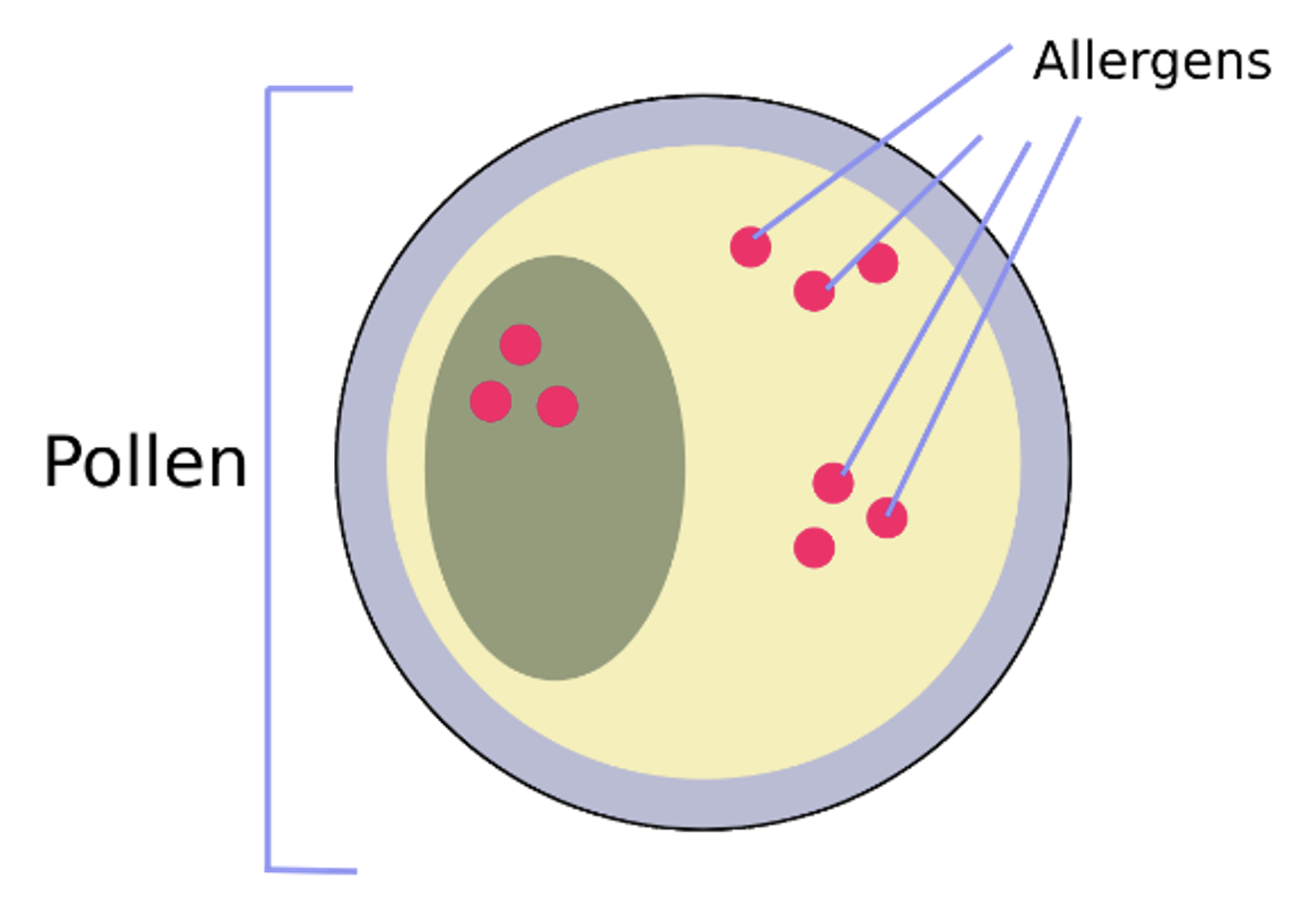 Pollen induce allergic reactions through the release of allergens. 9 Most often it is a small, highly water soluble protein or glycoprotein (with a molecular weight of > 10 kDa). They are primarily localized within the pollen grain in specific patterns of distribution and have to be released during a process of activation in order to become bioavailable. The allergens then bind to receptors on the immune cells to exert their effect. 9
